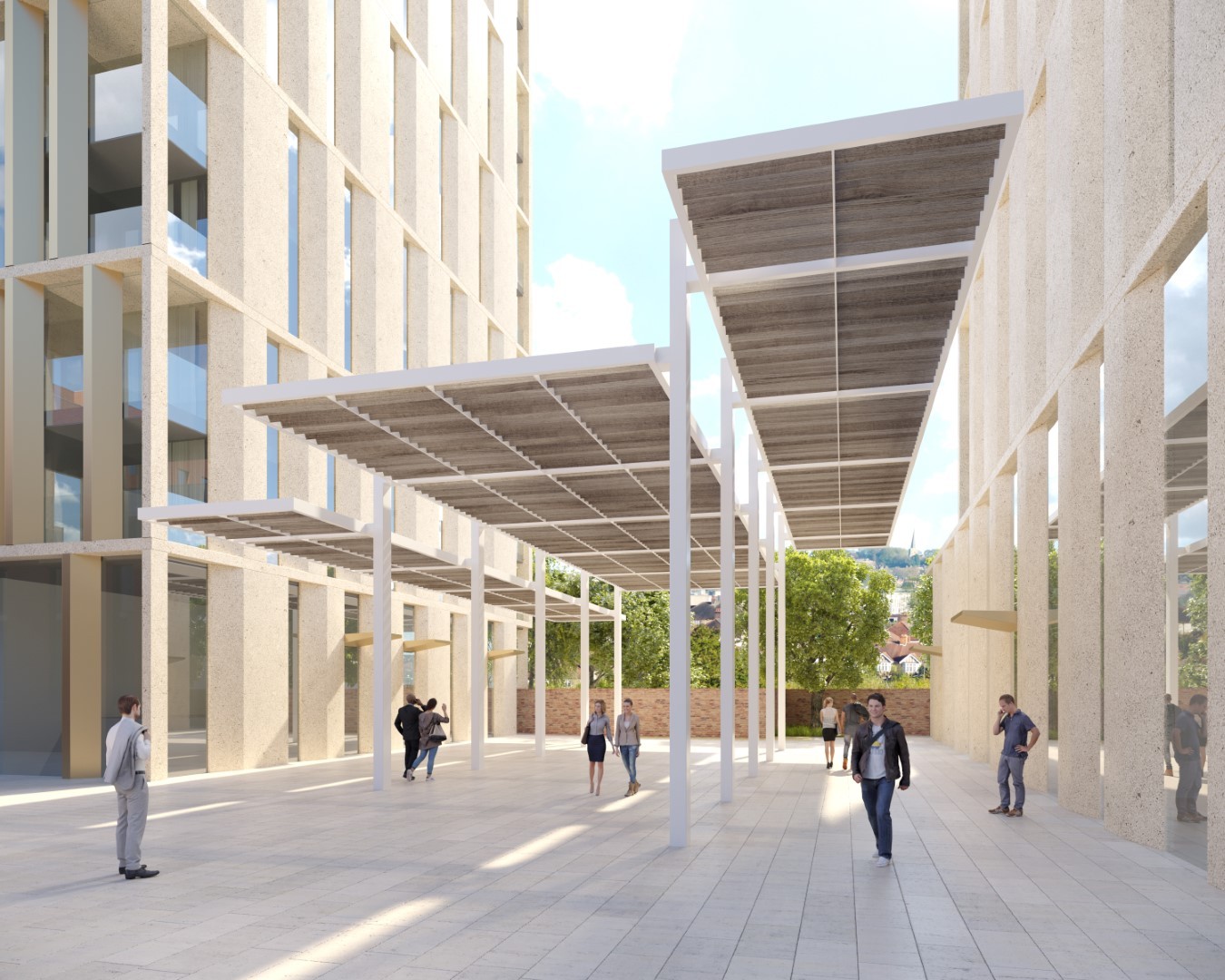 Integrated residential, retail, and civic uses, including a new library, around a clearly defined public square